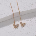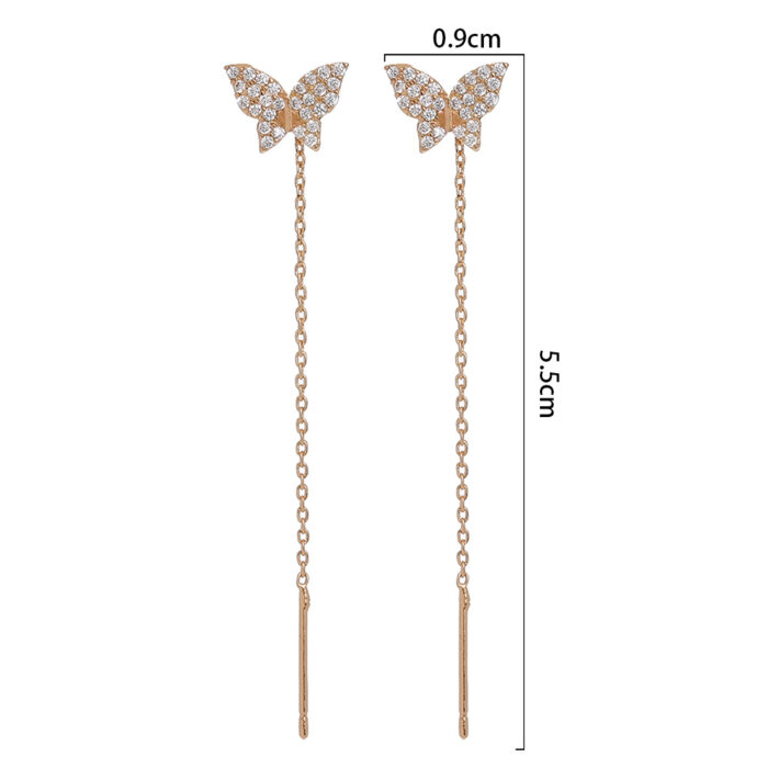 Butterfly Copper Micro Set Zircon Tassel Ear Line Femininity Senior Sense Long Tassel Face Thin Delicate Earrings