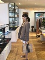 Women’s Portable Briefcase Professional Commute Striped Minimalist Shoulder Bag